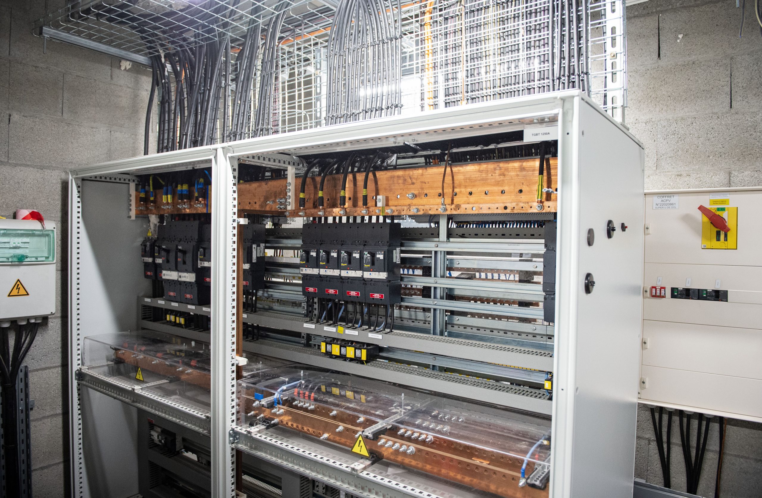 Le poste transformateur du site a également été repensé et repositionné en cabine préfabriquée extérieure. Cette nouvelle configuration renforce la fiabilité et la sécurité de l’alimentation électrique tout en optimisant l’exploitation du magasin.